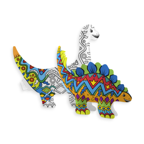 Bring the monstrous creatures of the past back to colorful life with this Dinosaur Friends 3D Colorables set. 3D Colorables are the fun, do it yourself, coloring toy set where you color, inflate and play. Enjoy coloring in fun designs on a brontosaurus and a stegosaurus with coloring supplies like colored pencils, markers or crayons. Then inflate your dinosaur colorable with the included stray to breathe new life into these prehistoric creatures.