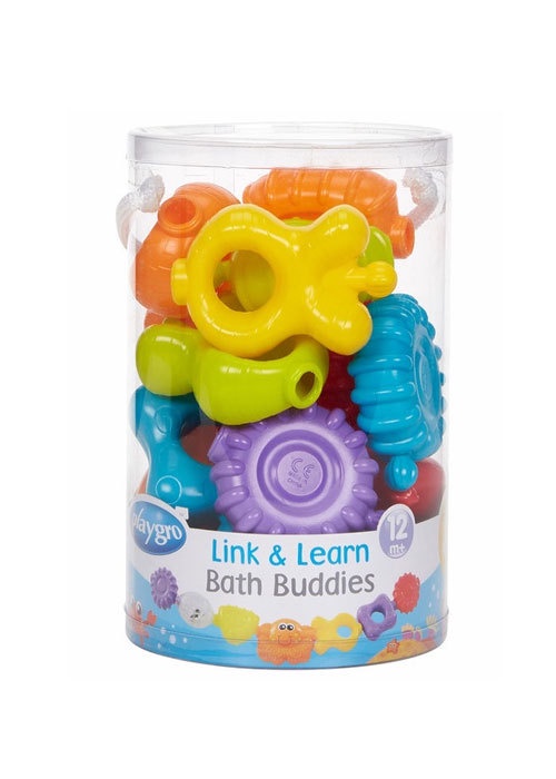 Bath time is great fun with the 15 Link and Learn Bath Buddies. Each fun shape is brightly coloured, and they connect together easily for imaginative play. Some Bath Buddies also contain rattling beads for auditory and visual stimulation.