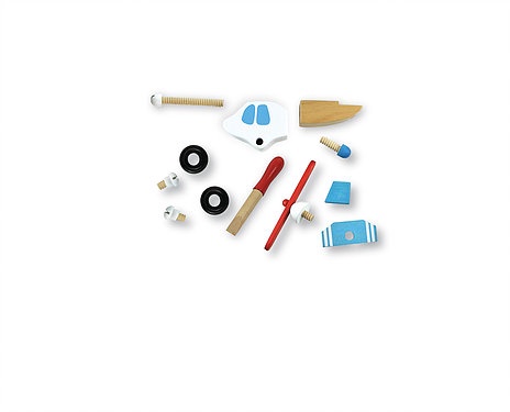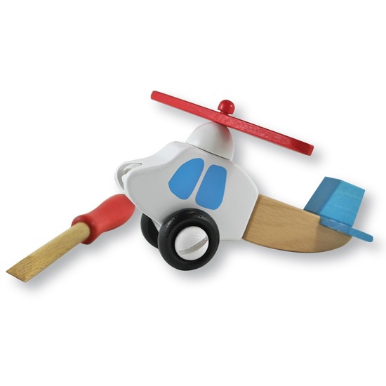 Create your own wooden Helicopter with this 12 piece Construction Set made from beautiful plantation beech wood. The set is held together with wooden screws that can be tightened with the wooden screwdriver provided. The finished Helicopter is 16x10x6cm. The set is easy enough that a 3-4 year old could master it and they will be delighted with their finished creation